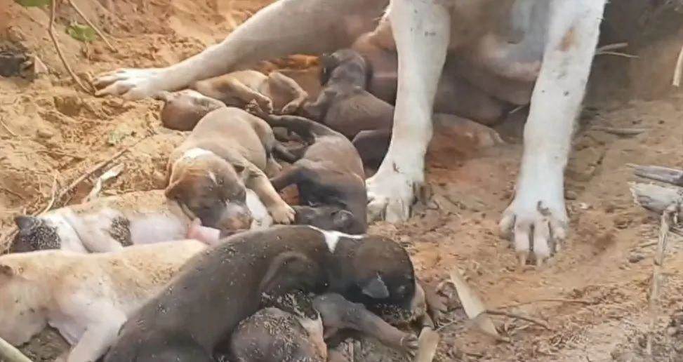 流浪狗頂著烈日,生下了十只狗寶寶,即將熱死時,被好心人救下。